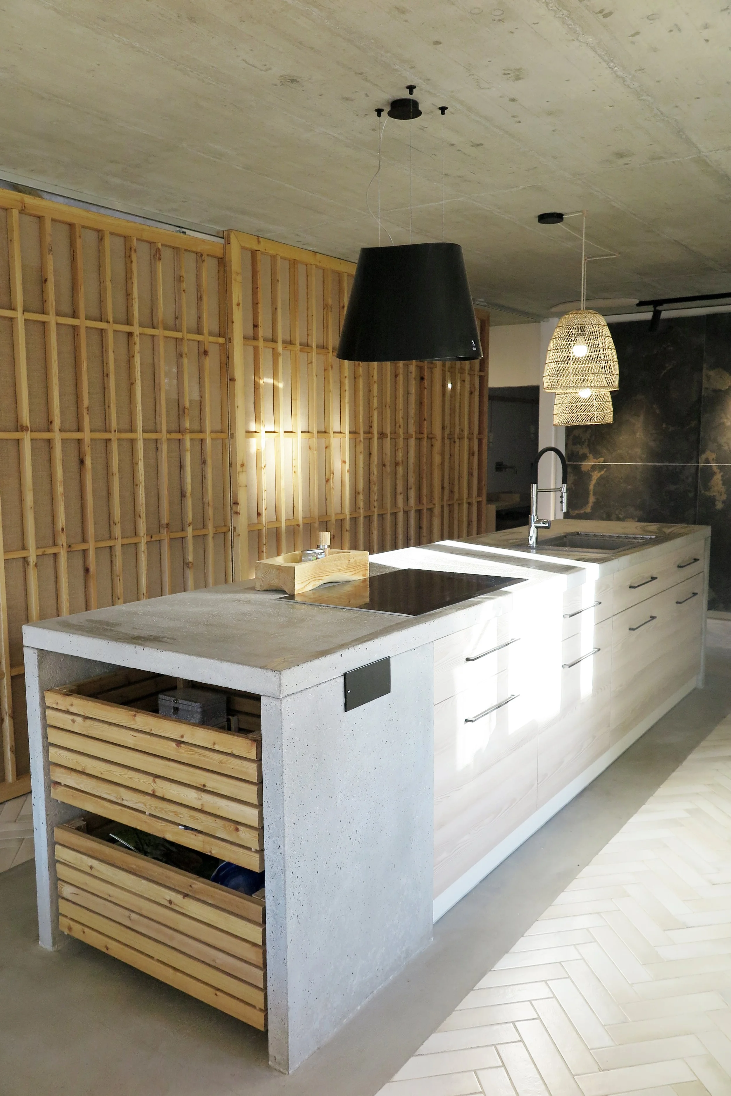 Interiér rodinného domu v Gattendorfe sleduje zadanie japonského minimalizmu v zmysle filozofie - wabi- sabi.