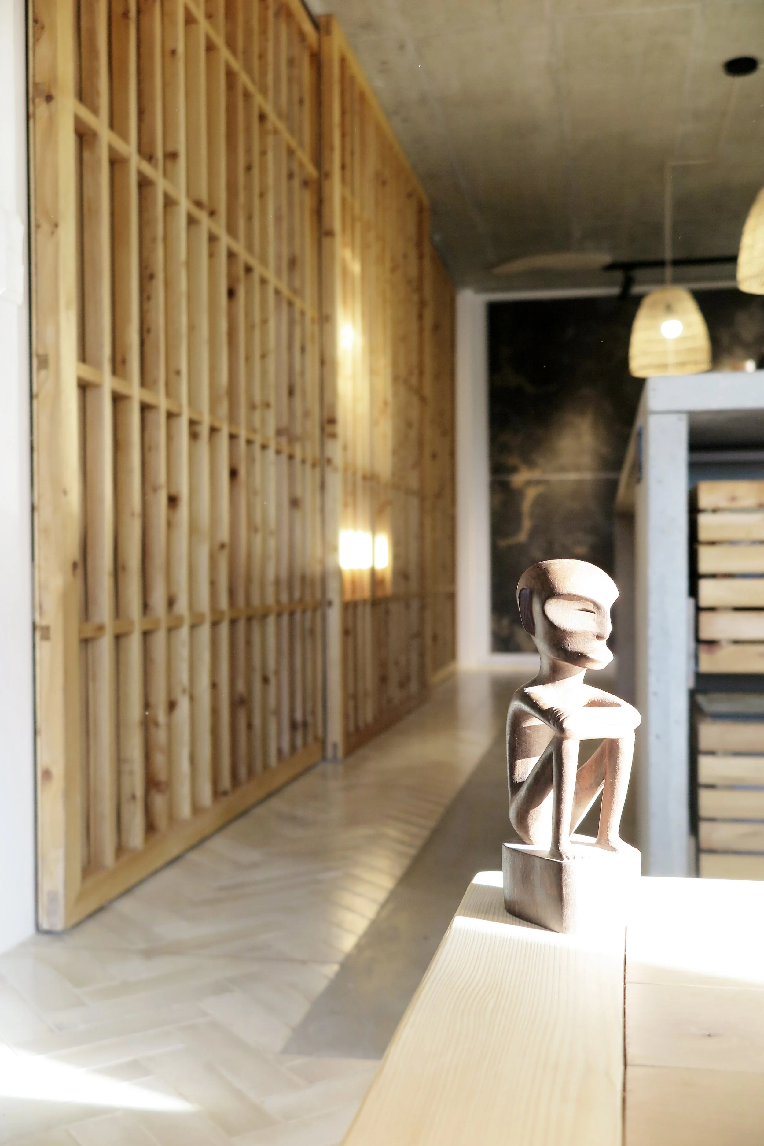 Rozvrhnutie priestorov v centrálnej dennej časti sleduje chod svetla a intenzitu denných aktivít počas dňa. Cieleným úmyslom bolo zharmonizovať proporcie, pigmenty a štruktúry materiálov a zariadení s intenzitou denných aktivít a svetla tak, aby priestor komunikoval s užívateľmi čo najprirodzenejšie.